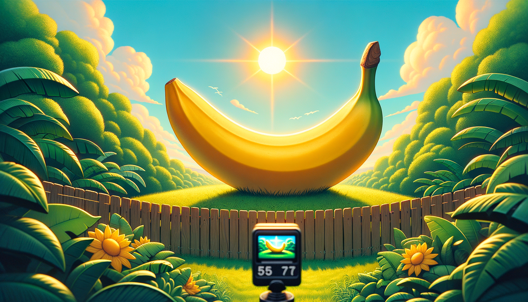 Banane royale trônant dans une jungle colorée, chasseuse d’ombres devant le soleil, ironiquement, se capture elle-même dans l’oeil d’une caméra.